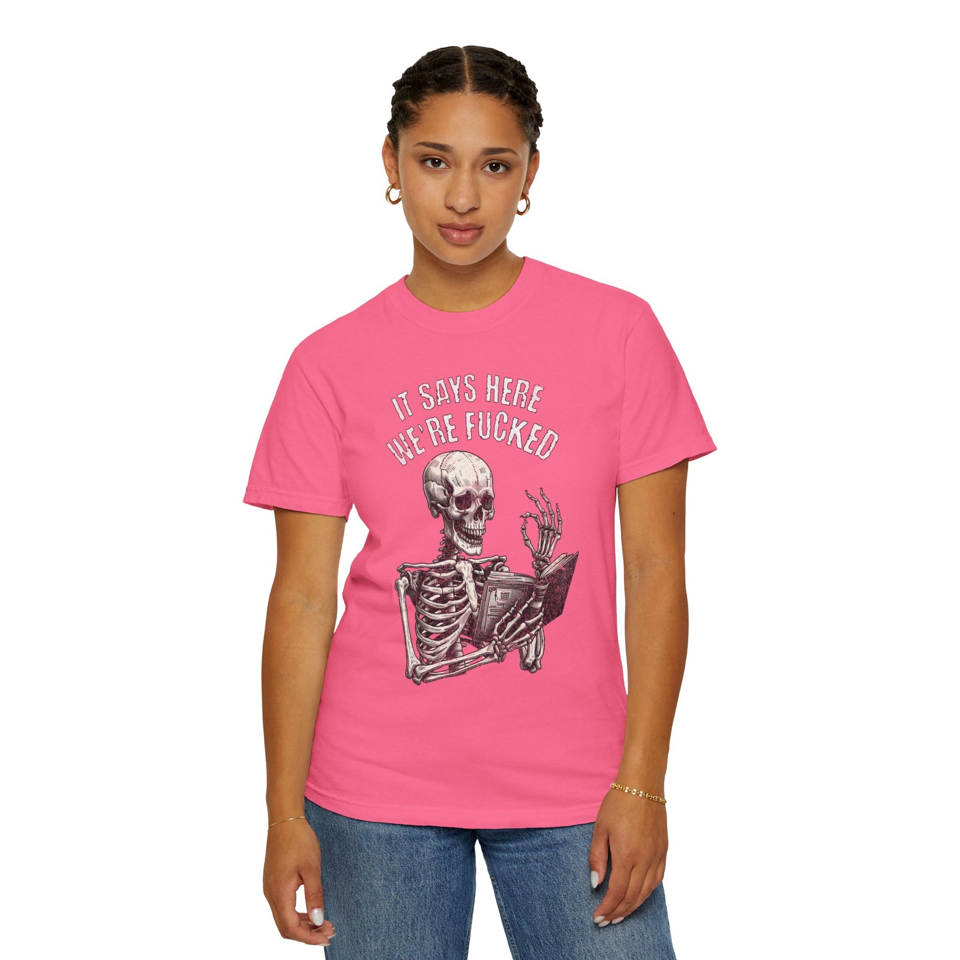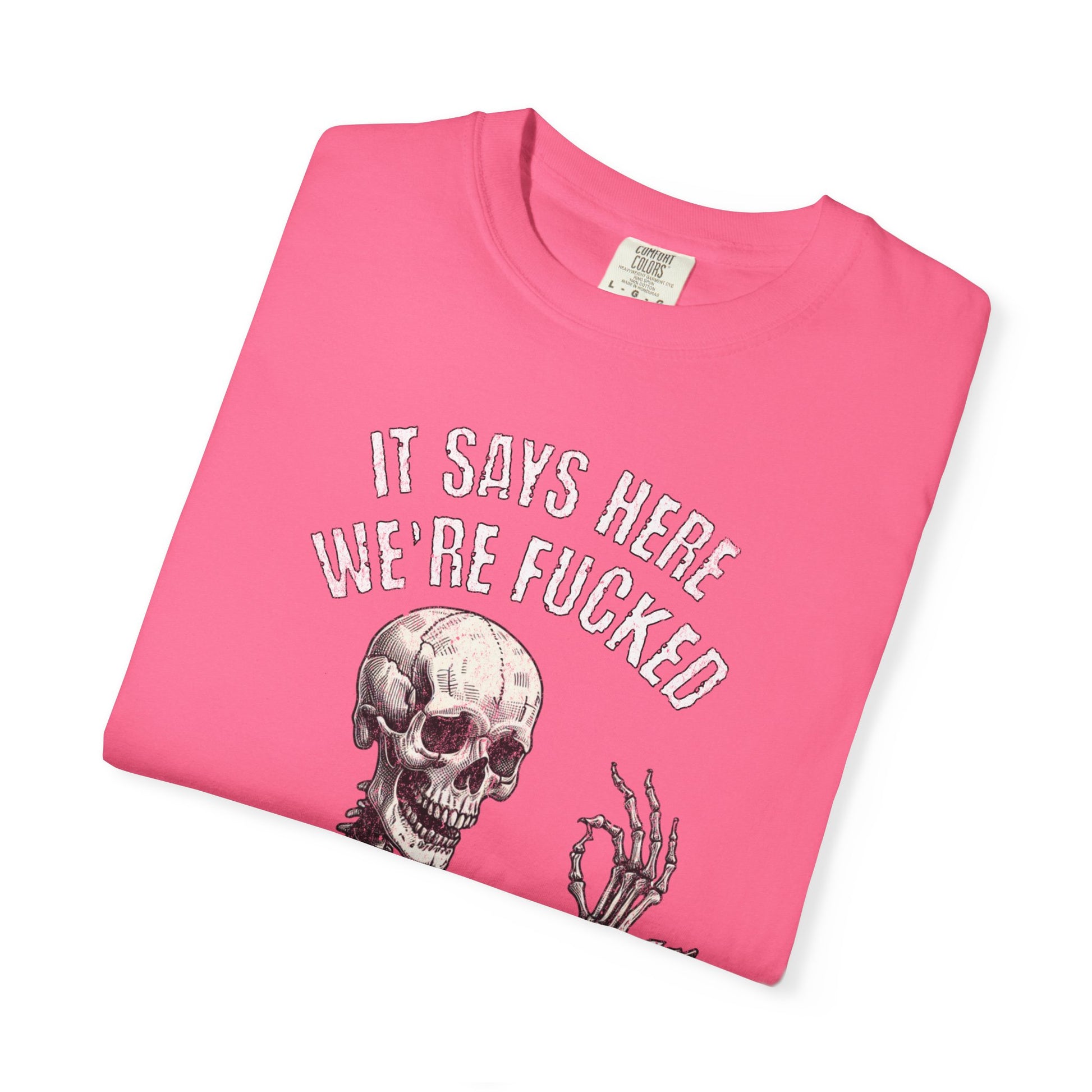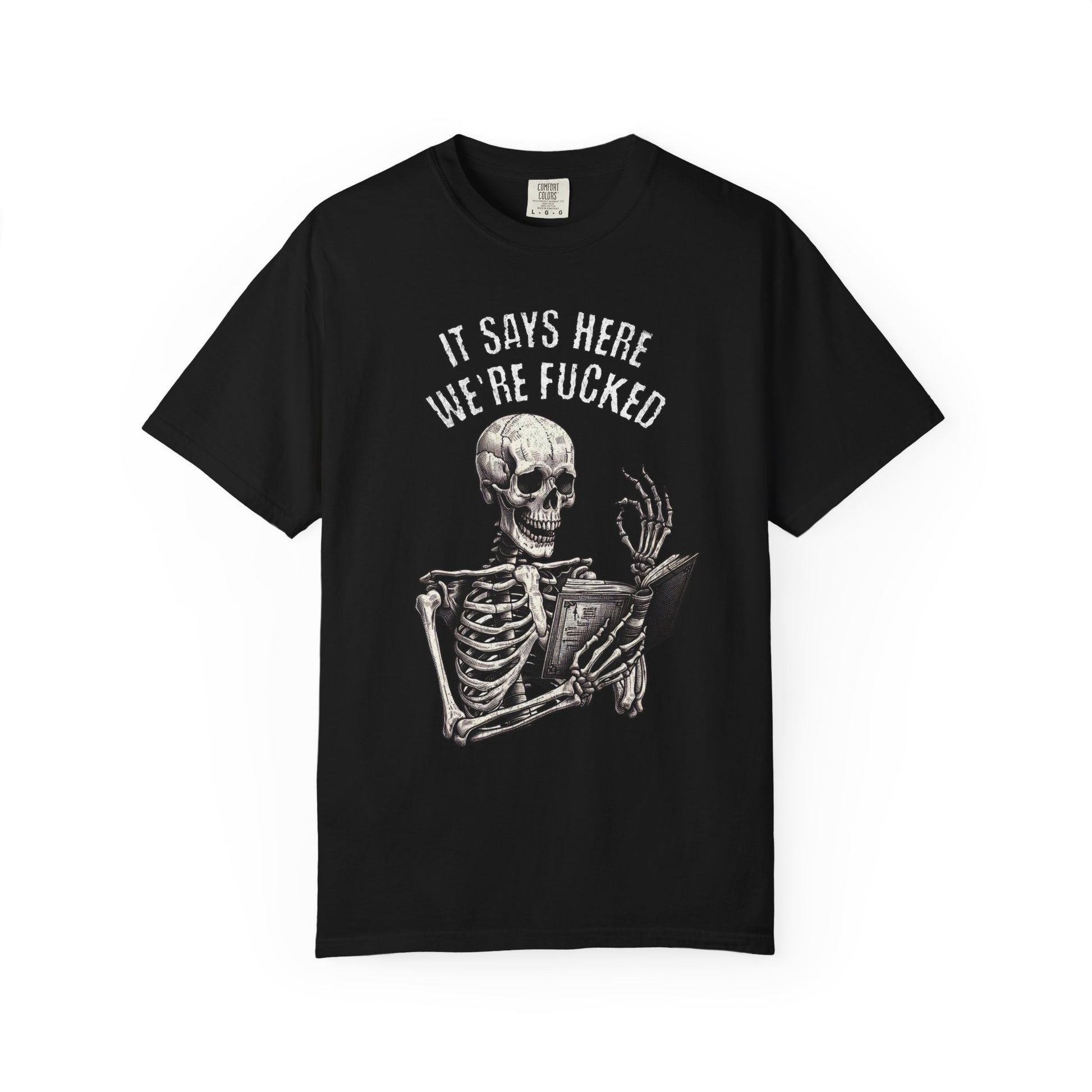 It Says Here We're Fucked Skeleton Tee - Comfort Colors 1717